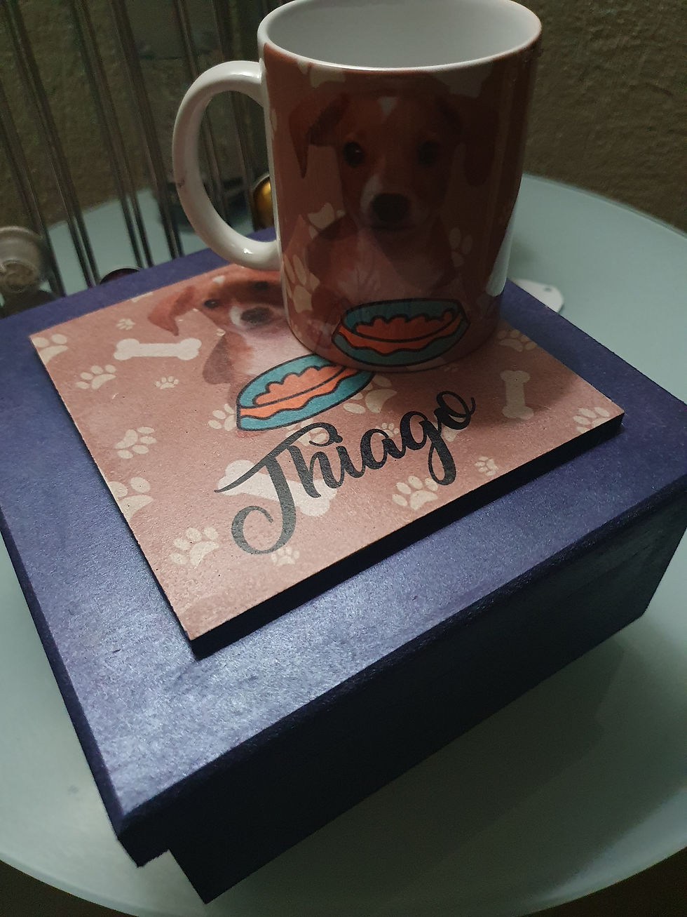 Kit 04 Caneca, camisa e box de madeira personalizados